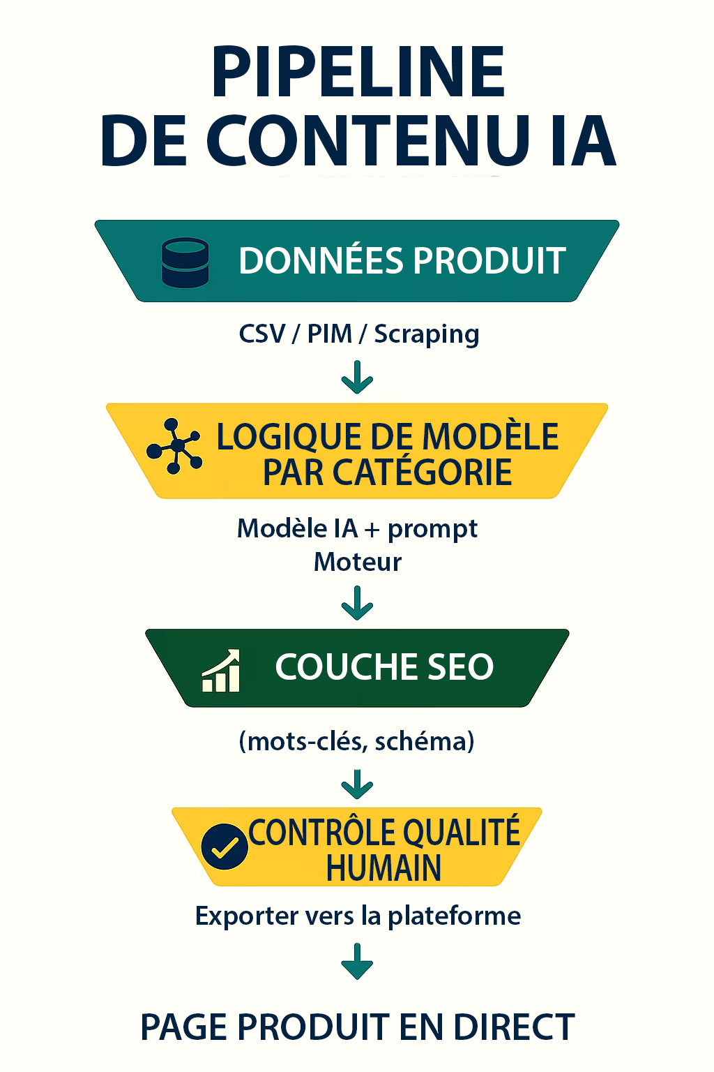 Voici comment nous transformons votre catalogue en contenu clair, optimisé et prêt à la conversion, plus rapidement.