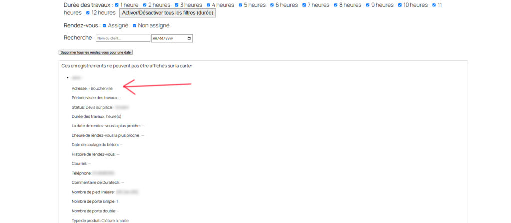 - Les filtres et une barre de recherche permettent aux gestionnaires de trouver des clients spécifiques, de trier par phase et de planifier des réunions en fonction des regroupements de lieux — optimisant ainsi les itinéraires du personnel sur le terrain.