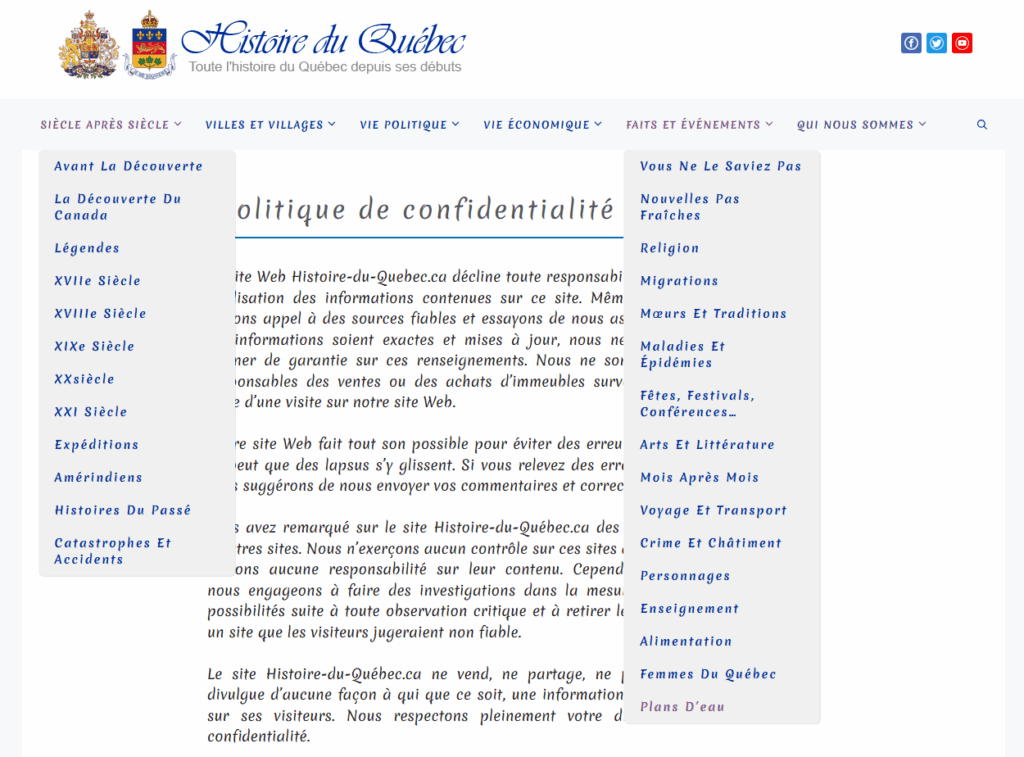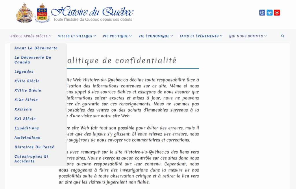 Histoire-du-Quebec.ca est un site web historique en langue française présentant l'histoire du Québec dans un format calme, structuré et convivial. L'objectif était de créer un espace numérique minimaliste mais élégant où les utilisateurs pourraient accéder à du contenu éducatif sans distraction, organisé siècle par siècle, sujet par sujet.