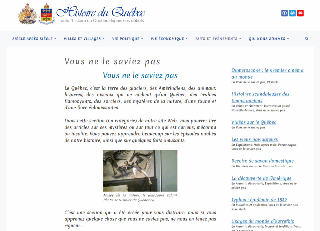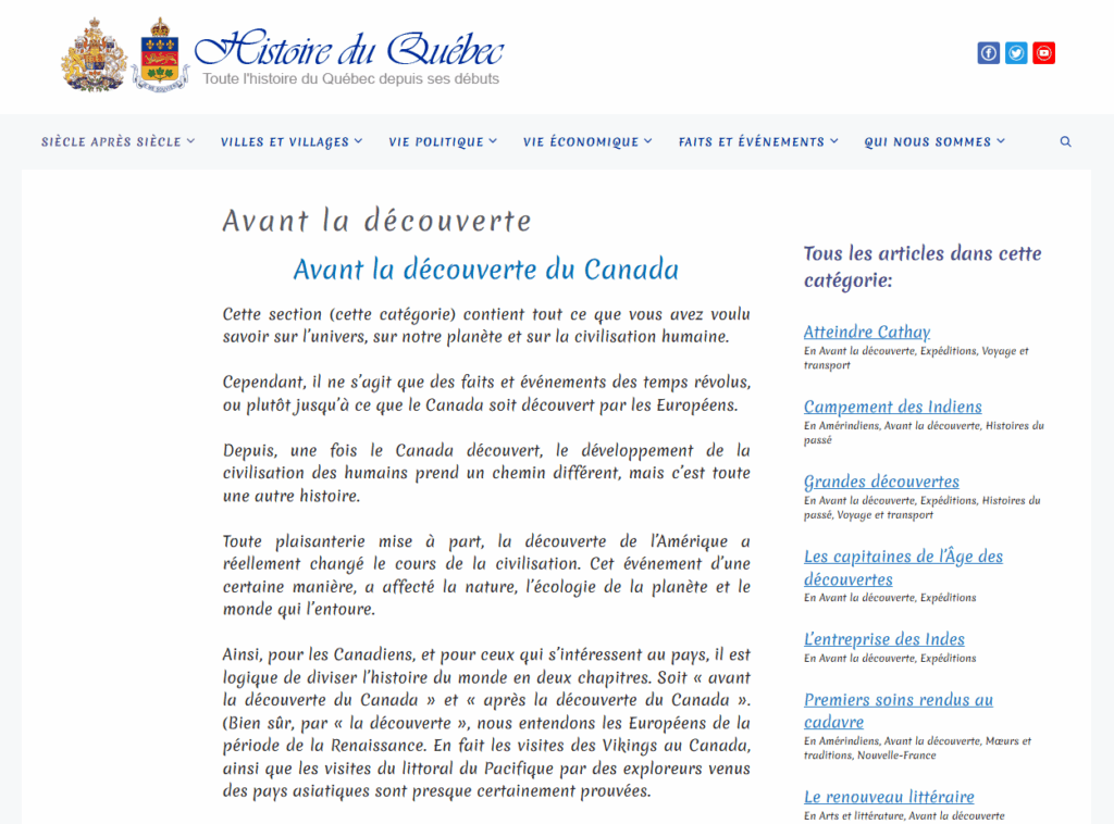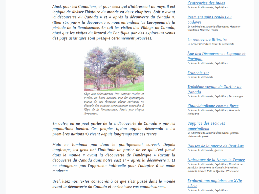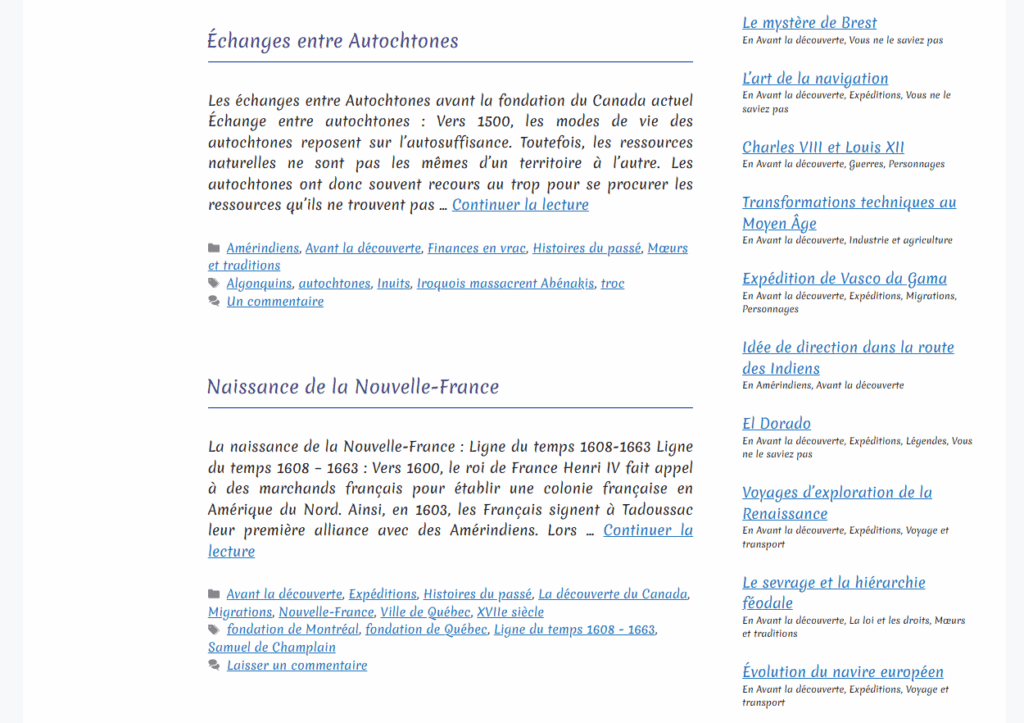 - Un flux constant de trafic provenant d'utilisateurs recherchant des informations historiques en français.