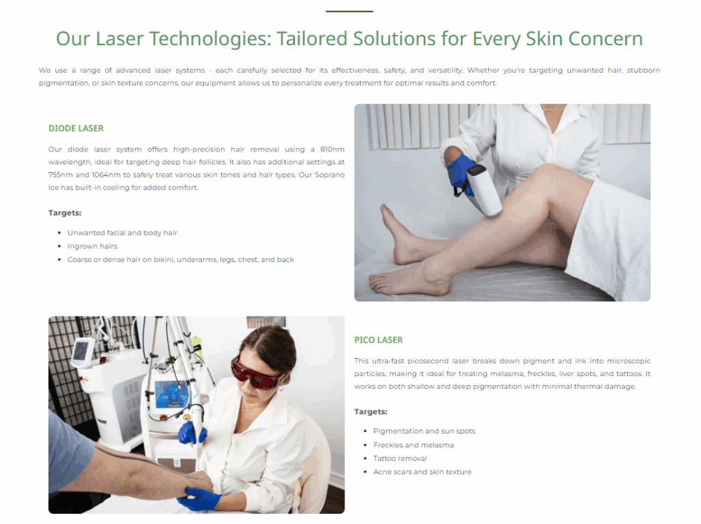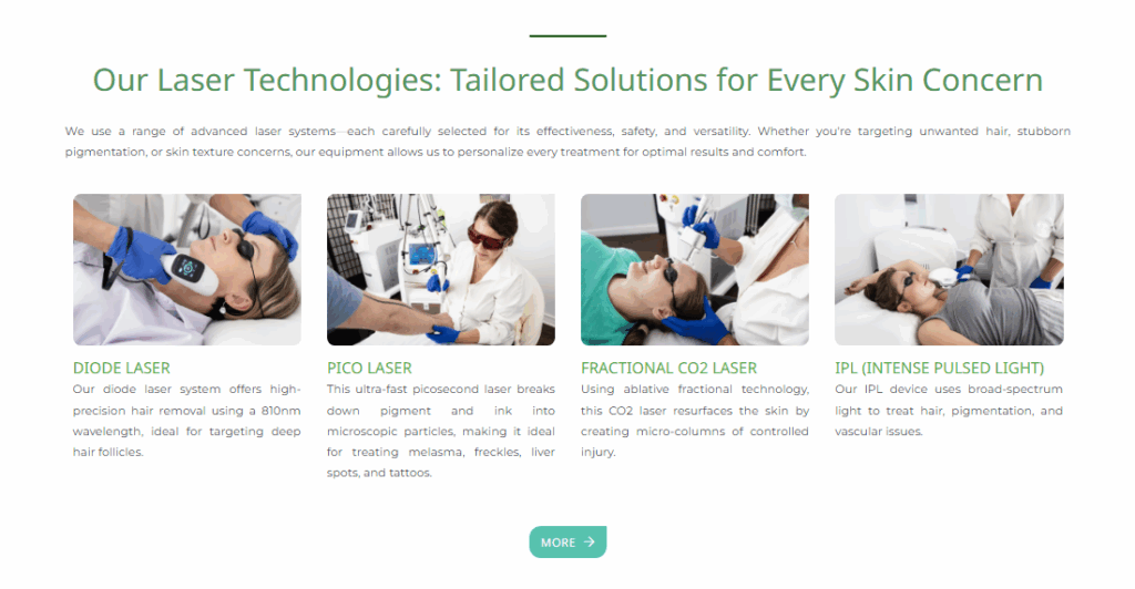 Site web de clinique d’esthétique au laser avec SEO et entonnoir de réservation