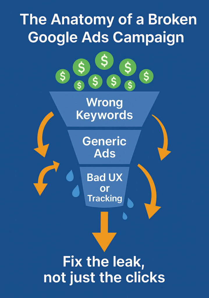 Wrong keywords, generic ads, and poor landing experiences cause invisible losses at each funnel stage. Fix the funnel – not just the top.