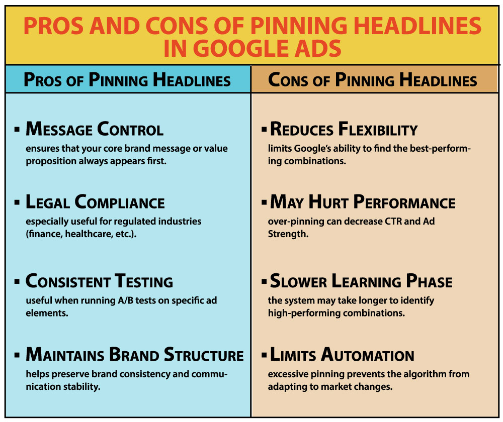 - May Hurt Performance: Over-pinning can decrease CTR and Ad Strength