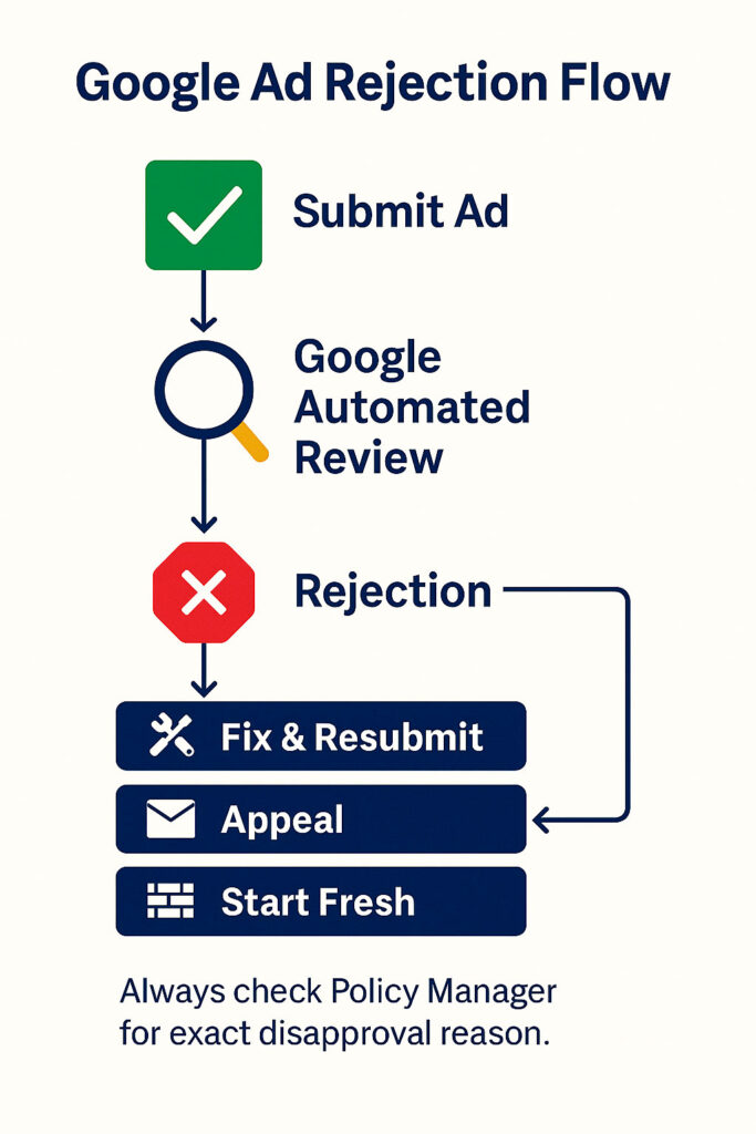 Even Google’s automated review systems aren’t perfect. Ads can be mistakenly flagged for policy violations — especially in complex or highly regulated niches.