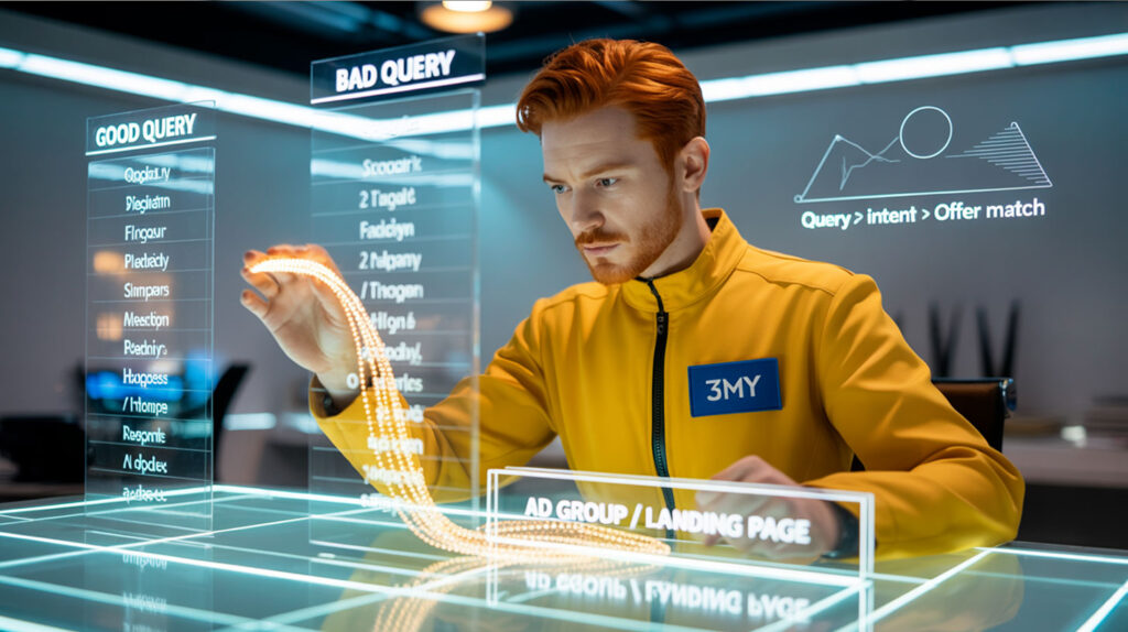 - Paid campaigns should use tight keyword groups (ideally one intent per ad group)