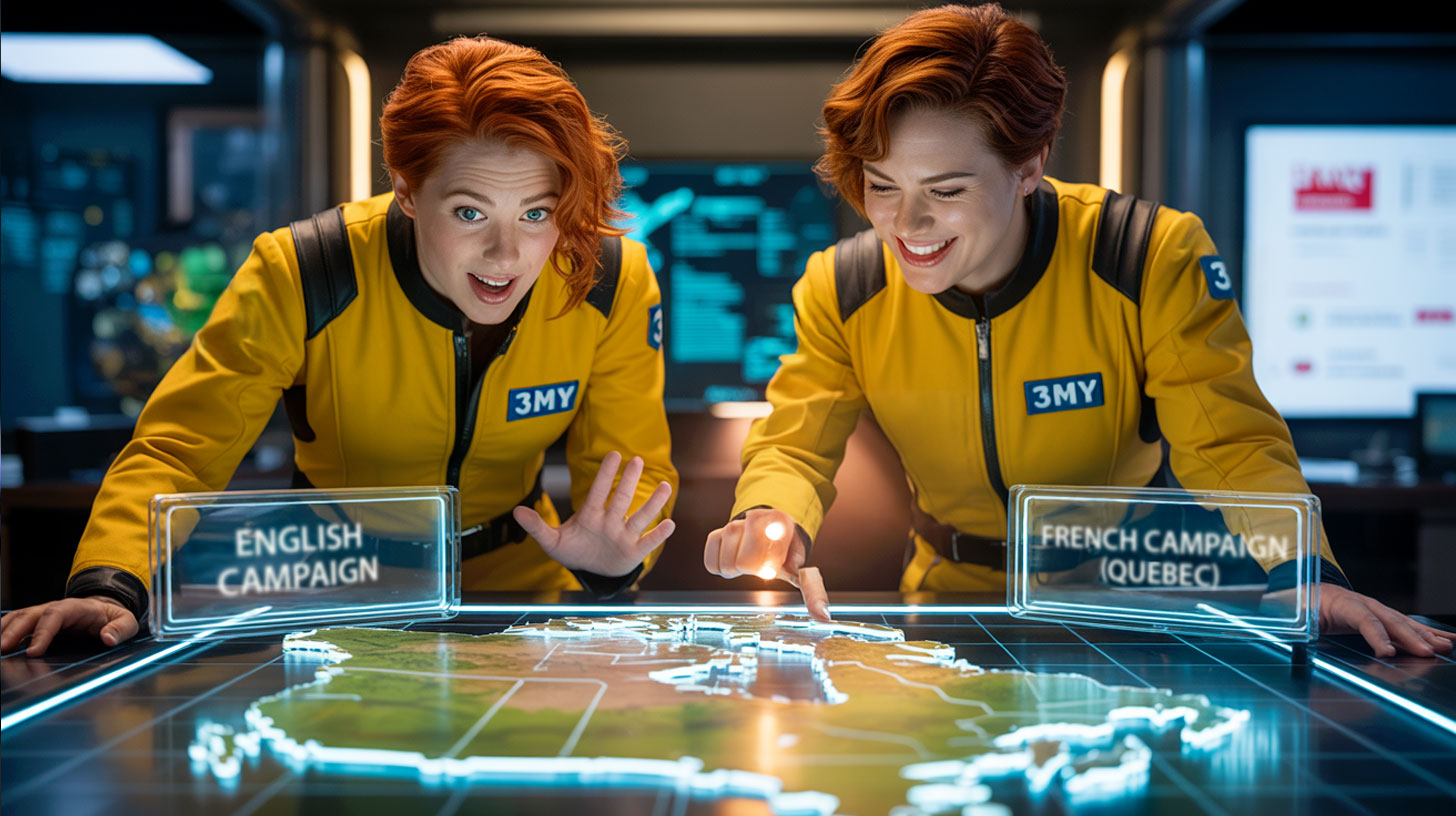 Running a “bilingual” campaign doesn’t mean you run one campaign in two languages. It means you operate two parallel campaigns — one in English, one in French — each with tailored assets.