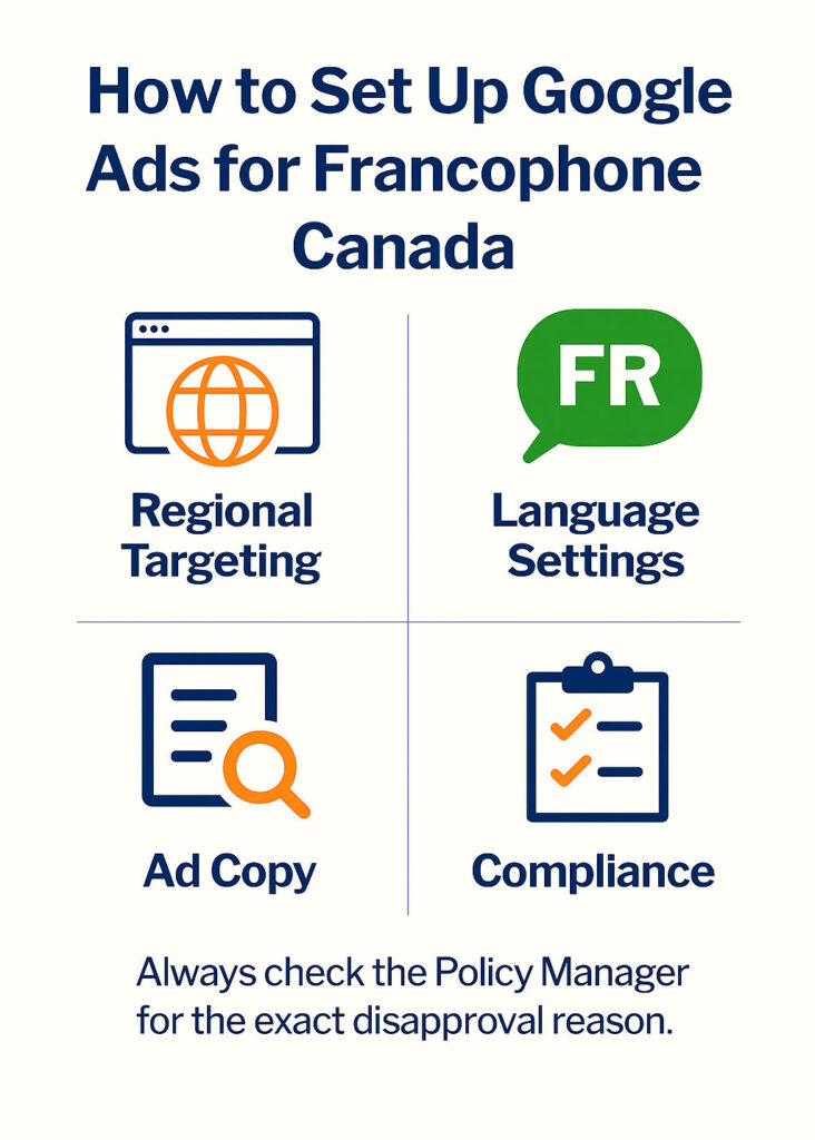 Successful Google Ads campaigns for French-speaking users must address three layers: language, location, and cultural context.